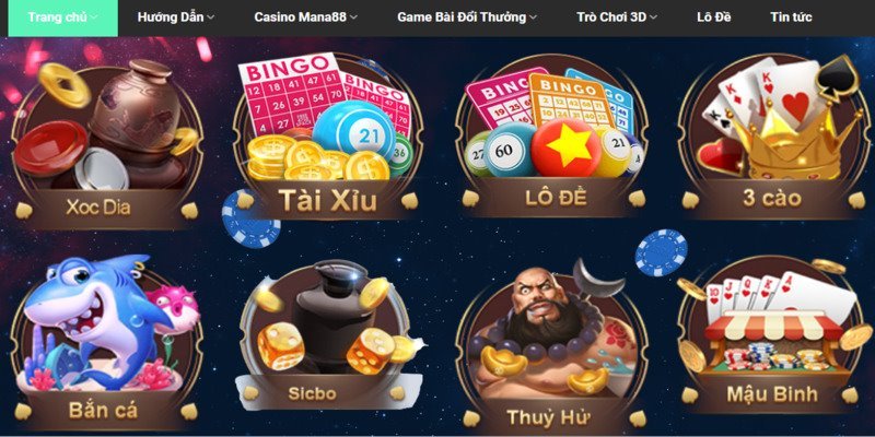 Mana88 xuất hiện và mang đến sân mới lạ hơn với các sản phẩm đặt cược đa dạng. Người có nhiều sự lựa chọn giải trí trong từng lĩnh vực khác nhau.Dưới đây là kho game đồ sộ của đơn vị được rất nhiều game thủ tham gia như: